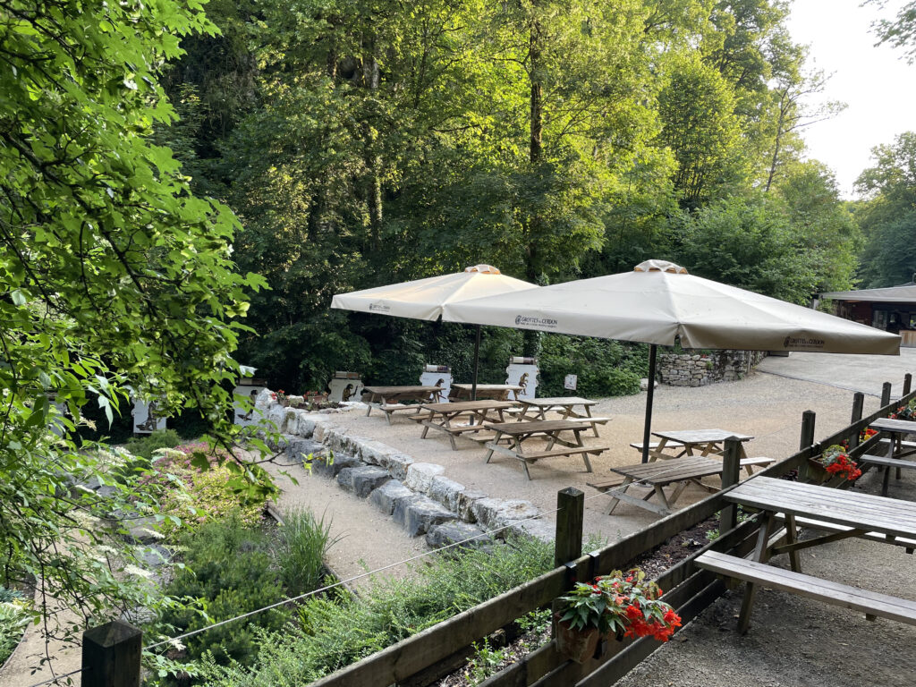 Selon vos envies : un espace de petite restauration pour déguster les produits du terroir ou des aires de pique-nique mises à votre disposition afin de profiter du parc entre vos activités préhistoriques !